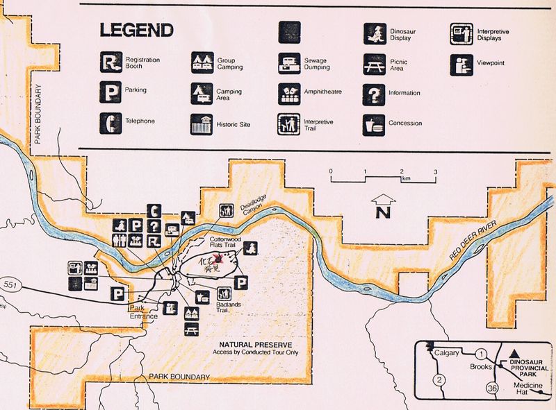 ■8/15・恐竜公園地図 恐竜公園(Dinosaur Provincial Park)全体の地図。 |