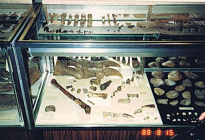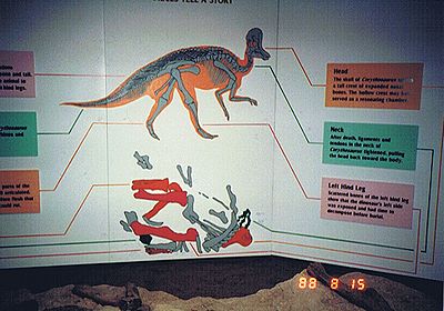 ■8/15・ディスプレイハウス内の説明板 ディスプレイハウス(Display House)内の発掘した恐竜化石の説明板。どれがどこの骨か、わかりやすく説明してある。 |