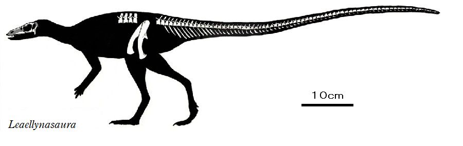 | リーエリナサウラは、オーストラリア、ビクトリア州、ダイナソーコーブの 白亜紀前期(約1億600万年前)のユーメララ層から1987年に発見された。 発見地は、オーストラリアが、南極大陸から北に分離し始めたときに、形 成れた大きなリフトバレー内の氾濫原であった。砂、泥、シルトの堆積 物が、死んだ動植物の残骸を覆い、長い年月、地下の圧力下で硬い岩に変 わった。当時、高緯度であったため、極地の冬の間、太陽の出ない暗い場 所で、大きな目が視力への適応の可能性を示し、おそらく温血動物であっ たと考えられる。年で最も寒い時は、地下の巣穴で過ごした可能性がある。 属名は、発見者であるトム・リッチとパトリシア・リッチの愛娘で、本種の 発掘にも貢献したリエーリン・リッチにちなむ。化石は、2つの断片的な 頭蓋骨を含むいくつかの部分骨格であった。上顎歯は、上顎の側突起の 下にくぼんでいる。上顎歯は、摩耗していない歯の両側に5つの等しく発 達した隆起がある。顕著な一次隆起が欠けている。尾は、長く、体の他の 部分を合わせた長さの3倍であった。系統上の位置は、現在解明されてい ない。おそらく幼体の全長は、約0.6~0.8mと推定されている。 |