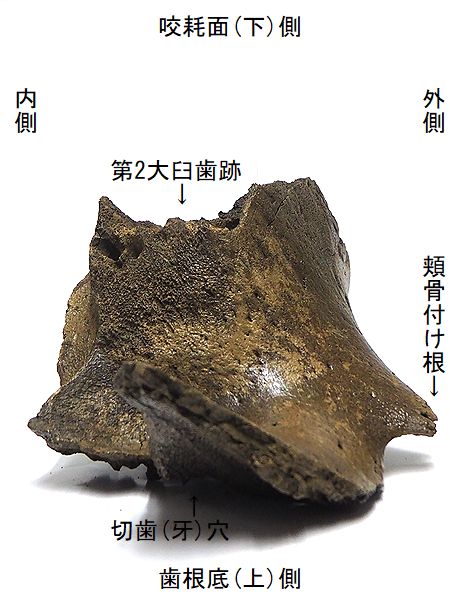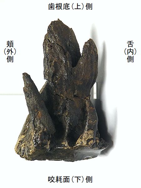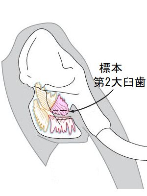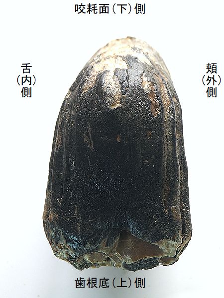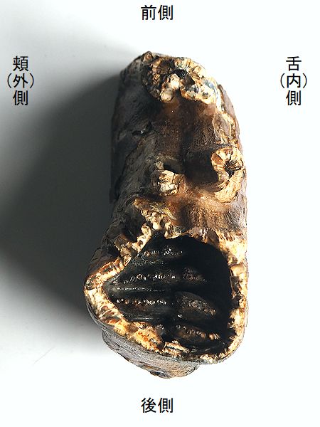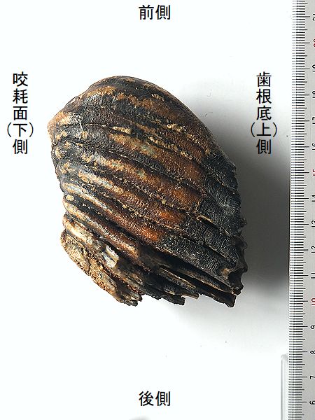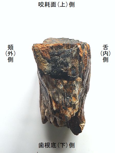 | 標本データ | 咬耗(下)面 | 歯根底(上)面 | 頬(外)側面 | 舌(内)側面 | 前側面 | 後側面 | 部位図 | 備 考 |