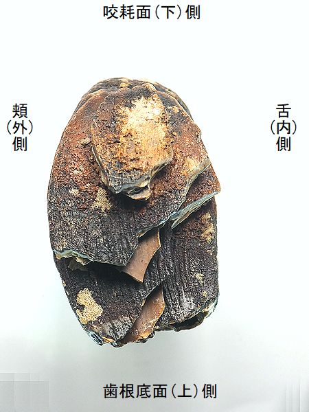| 標本データ | 咬耗(上)面 | 歯根底(下)面 | 頬(外)側面 | 舌(内)側面 | 前側面 | 後側面 | 部位図 | 備 考 |