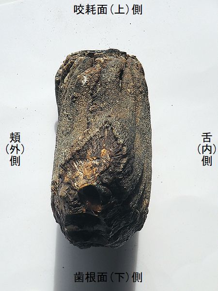 | 標本データ | 咬耗(上)面 | 歯根底(下)面 | 頬(外)側面 | 舌(内)側面 | 前側面 | 後側面 | 部位図 | 備 考 |