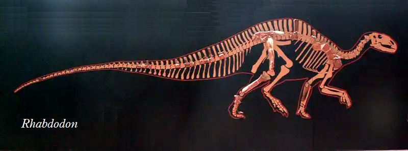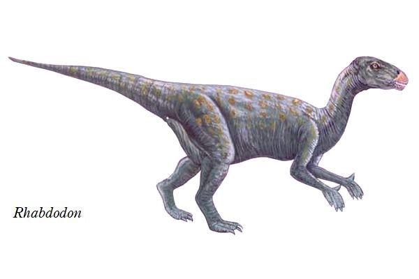 | ラブドドン科は、原始的なイグアノドントの科で、初期に派生した科である。チェコ 共和国、フランス、ルーマニア、スペインなど、ヨーロッパで白亜紀前期に出現し、 白亜紀後期まで生息したグループである。最も古い年代の化石は、スペイン、カステ ィーリャ・イ・レオン州の白亜紀前期(約1億2900万年前)の赤い粘土が主のカストリ ージョデラレイナ累層で発見されたものである。イグアノドントとヒプシロフォドン トの特徴を共有している。白亜紀後期にいたる大部分の間、テチス海西部の孤立した テチス諸島の環境は、ラブドドン科の進化に貢献した。ラブドドン科の歯列は、比較 的原始的であり、これは彼らの生息地が広範囲でなく孤立していたため、形質の混合 がなく、長期間、形質が維持されたことと一致している。化石記録には、群島の3つ の地理的に離れた場所で、それぞれ3つの系統を構成するラブドドン科の属が存在し た。ラブドドン科は、中緯度の温暖な緑豊かな植物環境での生活に適していた。 以下に、ラブドドン科のおもな属を示す。 ラブドドン科の属 ① ラブドドン (Rhabdodon) (スペイン、南フランス、白亜紀前~後期) ② モクロドン (Mochlodon) (ハンガリー、ルーマニア、白亜紀後期) ③ ザルモックス (Zalmoxes) (ルーマニア州、白亜紀後期) |