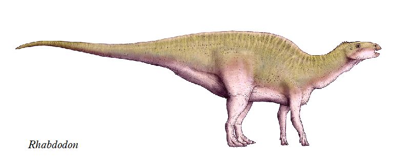 | ラブドドン・プリスカスは、1840年代後半、南フランス、マルセイユ近く のピレネー山脈の白亜紀後期(約7000万年前)のマルヌルージュインフェ リュール層から発見された。スペインの白亜紀後期の(Lañoラニョ、Chera チェラなどの)地域からも発見されており、イベリア半島での属の発生を 示している。全長は、4~6m、体重は、250~380Kgと推定されている。 |
